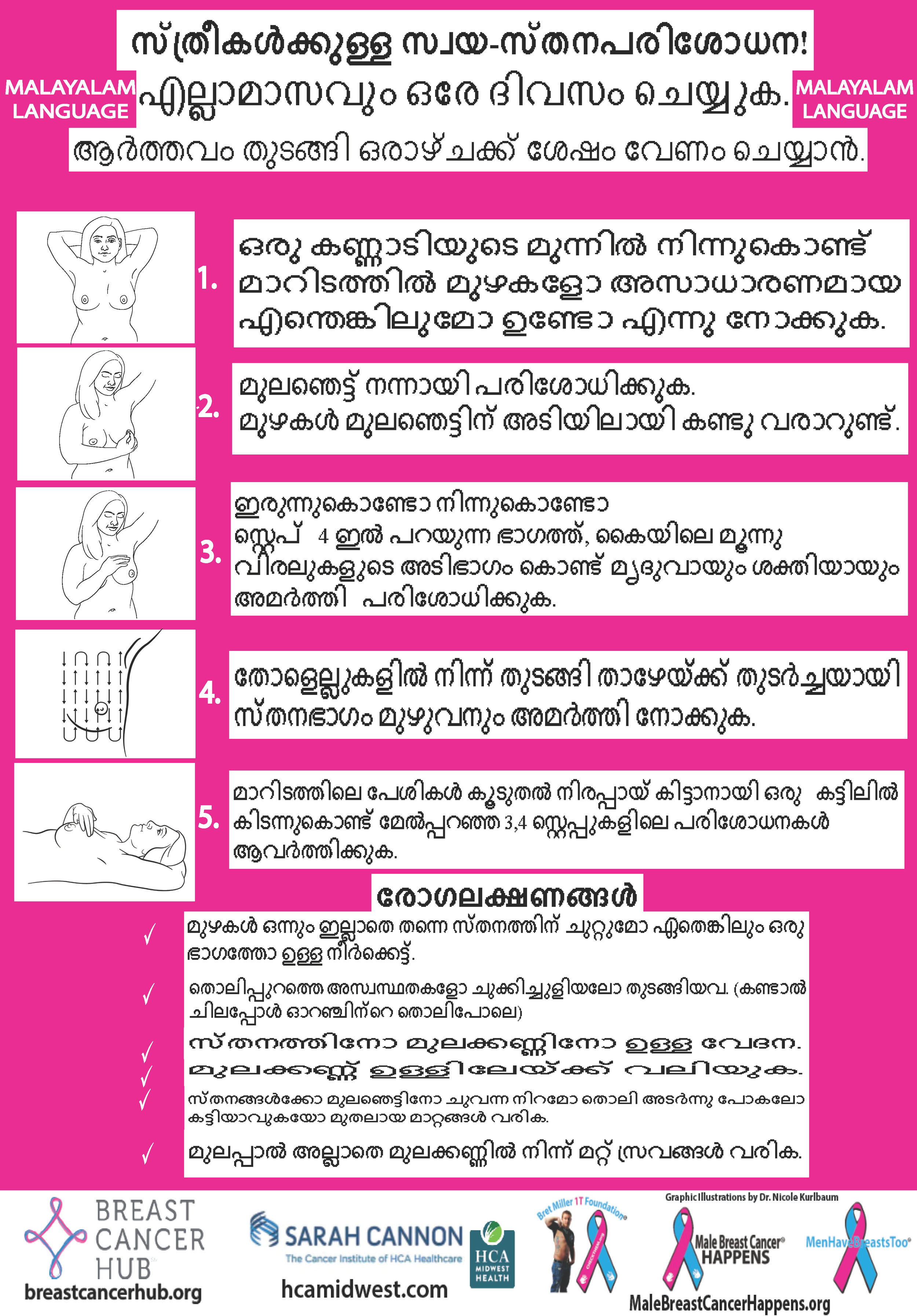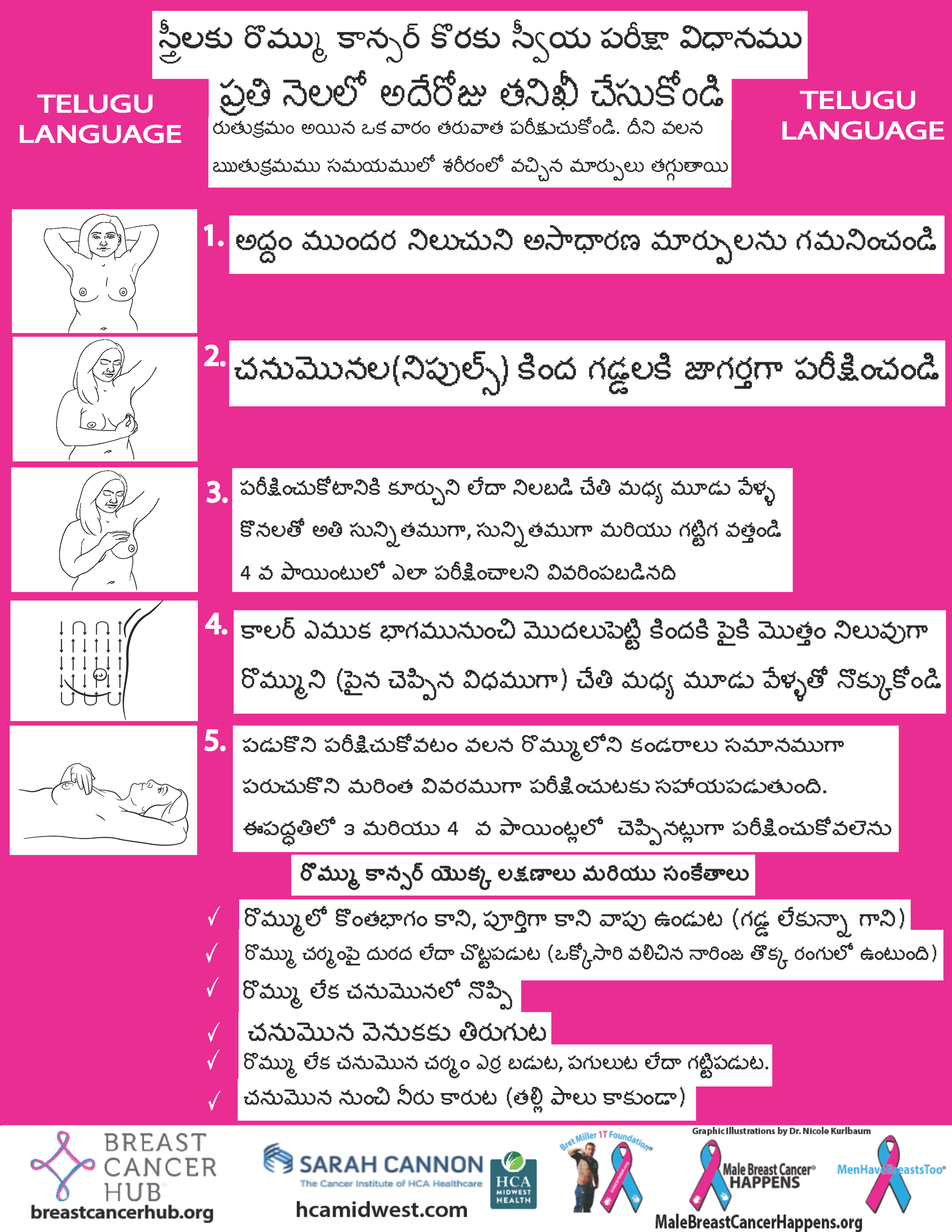 Breast Self Exam Card - 27 Languages, Download your language & share in your network. #TogetherWeSaveLives